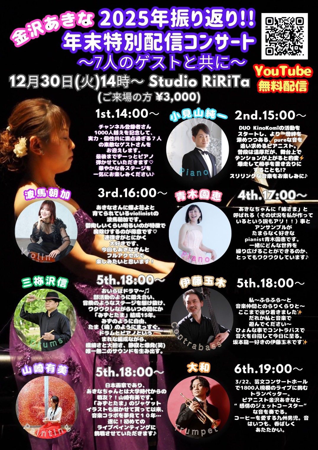 【金沢あきな 2025年振り返り‼︎年末特別配信コンサート 〜7人のゲストと共に〜】に出演します。