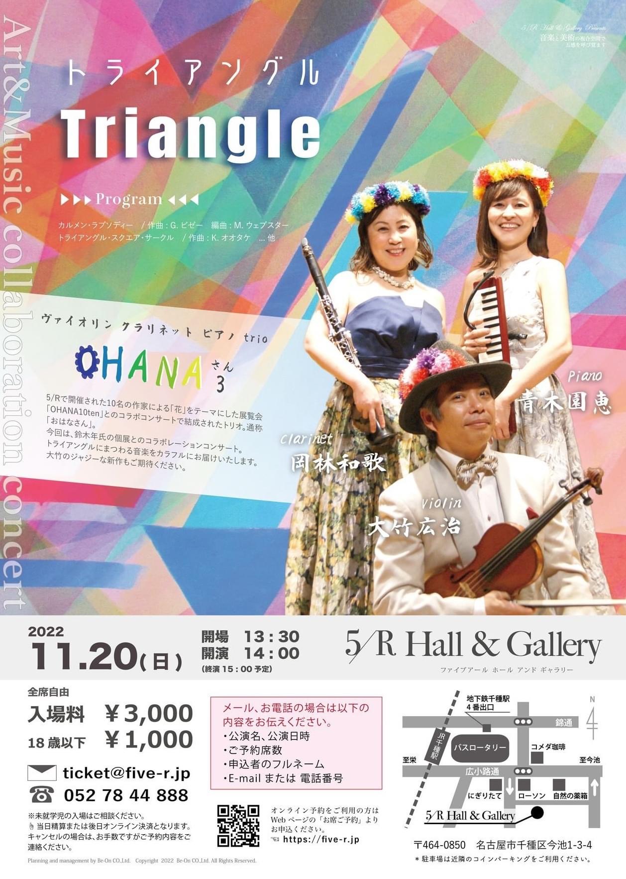 11/20(日) OHANA3 コラボレーションコンサート 2022.11.20演奏会情報 HOME ブログ 演奏会情報 11/20(日) OHANA3 コラボレーションコンサート 11/20(日) 5/R Hall & Gallery にて、鈴木年さんの個展「Triangle Series」に合わせた「OHANA3 Triangleコンサート」おかげさまで無事終演いたしました。 11/20(日) OHANA3 コラボレーションコンサート Post 演奏会情報 11/6(日)・11/13(日) TOWANIコンサート 11/27(日) 森のStrings Ensamble Concert
