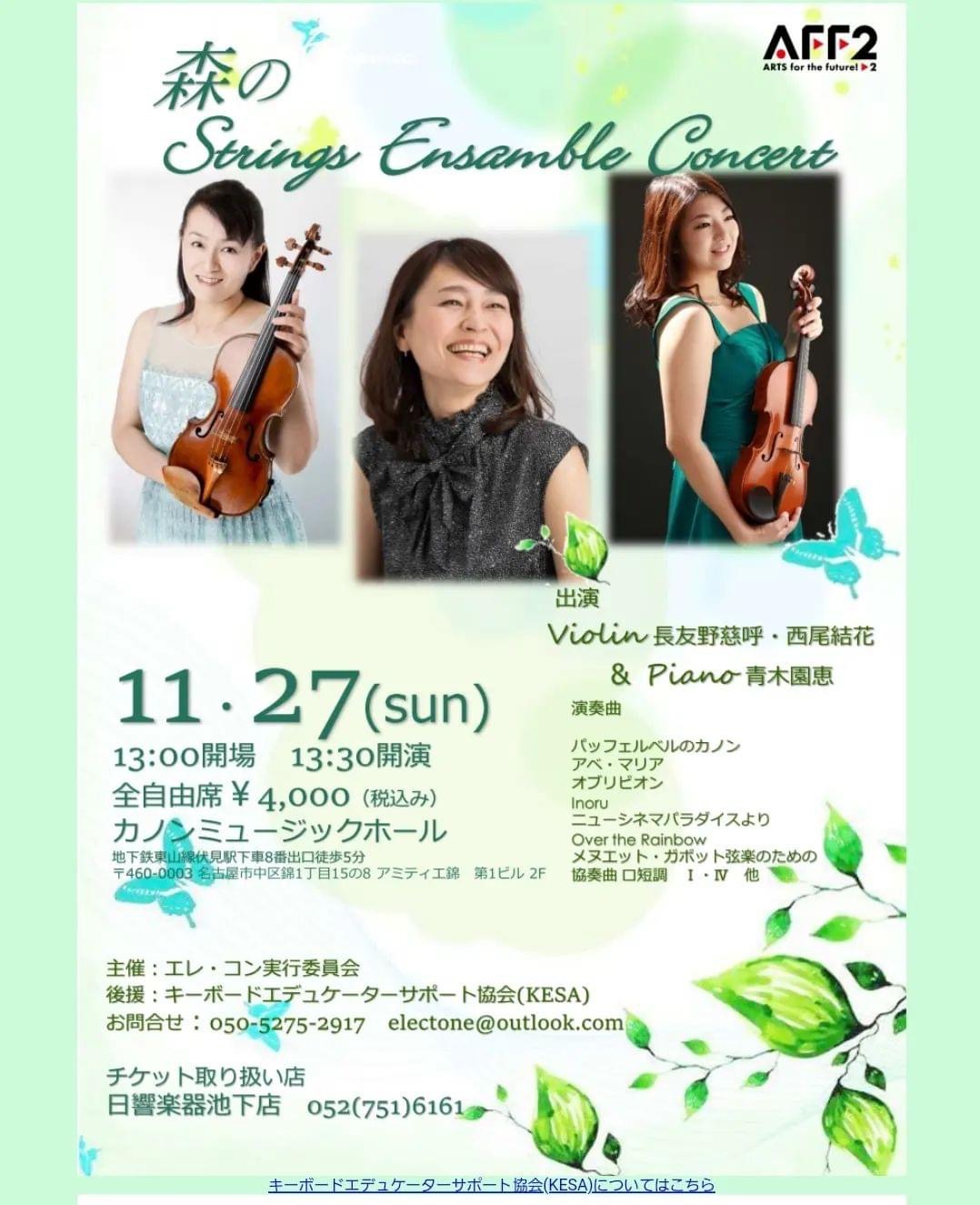 11/27(日) 森のStrings Ensamble Concert 2022.11.27演奏会情報 HOME ブログ 演奏会情報 11/27(日) 森のStrings Ensamble Concert 11/27(日) カノンミュージックホールにて「森のStrings Ensamble Concert」おかげさまで無事終演いたしました。 11/27(日) 森のStrings Ensamble Concert Post 演奏会情報 11/20(日) OHANA3 コラボレーションコンサート 12/25(日) 名古屋岩の上教会2022年クリスマスの催し